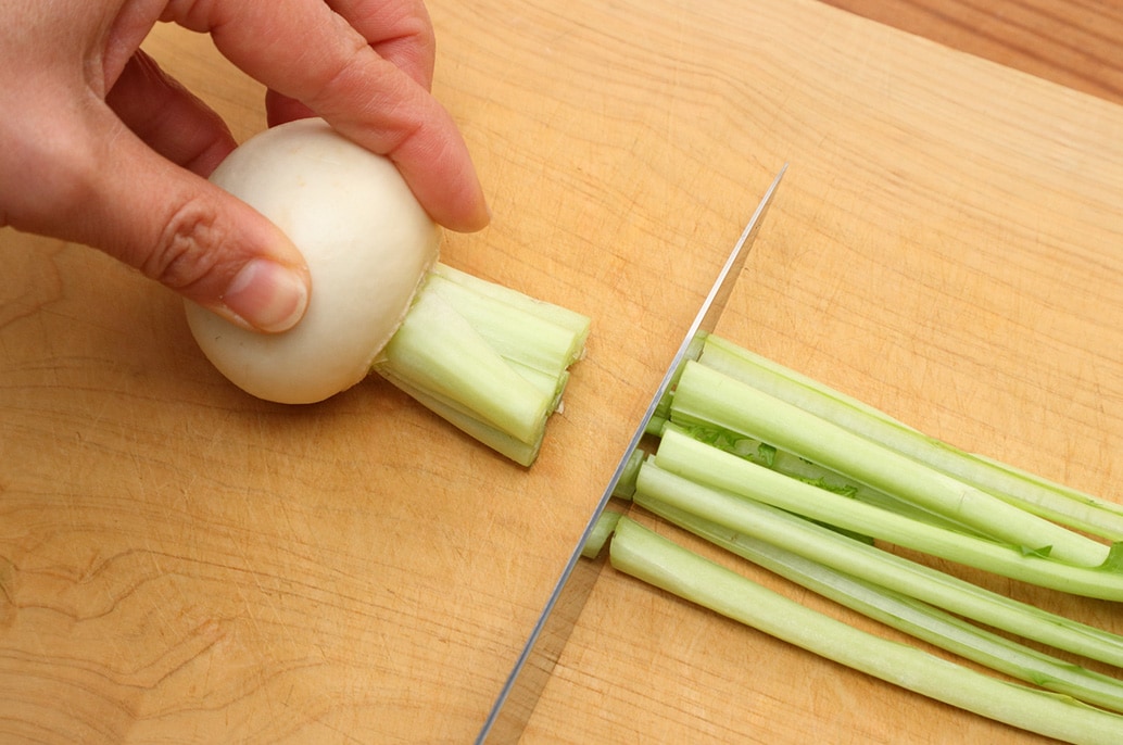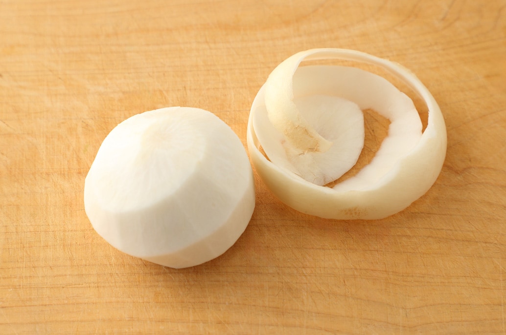 White Turnip – Peel, leaving some stem and greens
