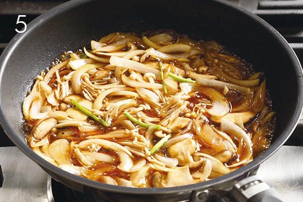 Sukiyaki has two preparation styles: In Japan’s western Kansai region, meat is seared and seasoned before simmering; in eastern Kanto, meat and vegetables are simmered together in warishita, a liquid seasoning blend of soy sauce, mirin, sake and sugar.