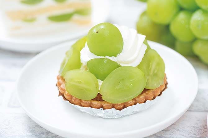 The name of this large, distinctive grape reflects its glossy, lustrous appearance and beautiful yellow-green color; indeed, some Shine Muscat enthusiasts maintain that a more yellowish hue indicates ripeness and sweeter flavor. It is unsurprising that fresh Shine Muscat grapes are popular luxury gifts, and are also used to add a delectable and elegant touch to both Western and Japanese confectionery.