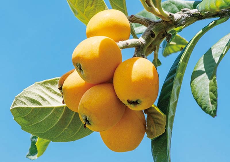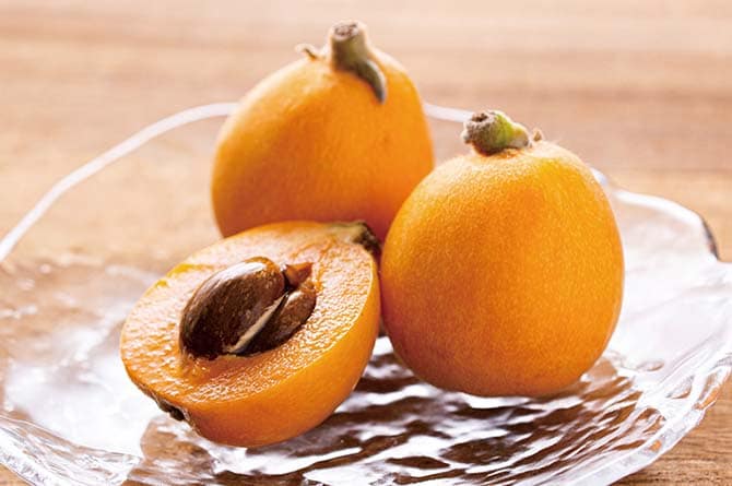 Loquat trees blossom in winter and the fruit matures from May to June. Nagasaki and Chiba prefectures, with their warm climates and relatively dry summers, produce high quality loquats: the Nagasaki Mogi is prized for its elegant aroma and mild acidity, while Chiba’s juicy Boshu biwa is larger in size.