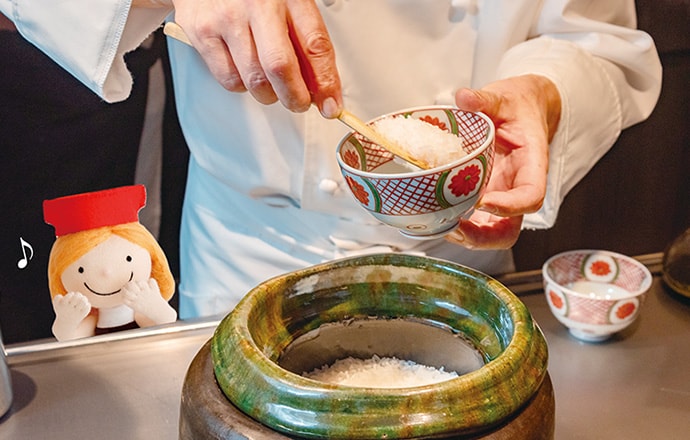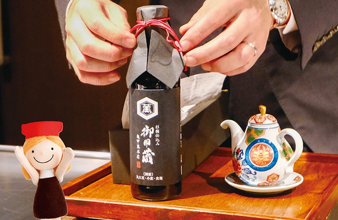 At Colza, guests may select from two types of steaks as their main course. We tried the Colza Selected Premium Wagyu Sirloin Beef Steak, where thick-cut wagyu is enjoyed by dipping in Goyogura Soy Sauce. At Colza, the chef recommends the best way to prepare each cut, and for this visit, we followed his suggestion of medium rare. Goyogura Soy Sauce is a special soy sauce that Kikkoman has long supplied to the Imperial Household, and is available only at Colza, the Kikkoman Soy Sauce Museum and on Kikkoman’s online shop (Japan delivery only), which is why many guests choose to purchase it here as a souvenir. The steak is accompanied by freshly steamed Premium Tako rice CELEB, a rarely available rice often referred to as “the legendary rice.” The tender juicy steak, enhanced by aromatic Goyogura Soy Sauce, releases abundant umami with every bite. Eaten together with the glistening, perfectly cooked rice, this dish is a unique Japanese indulgence.