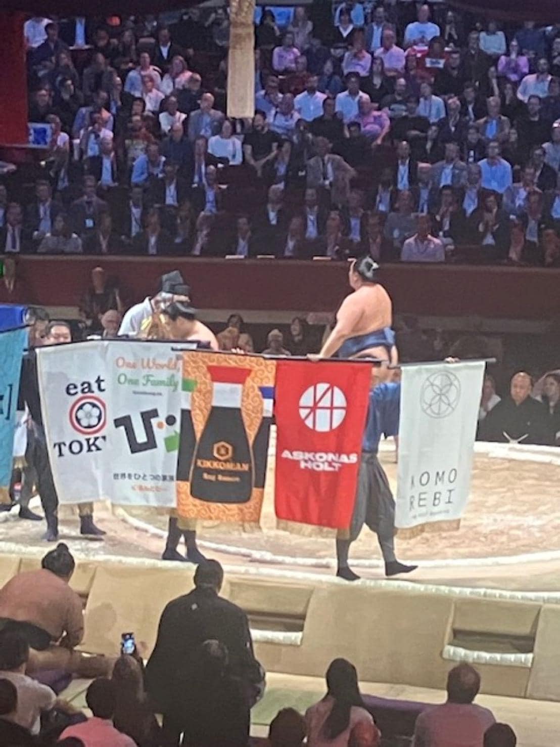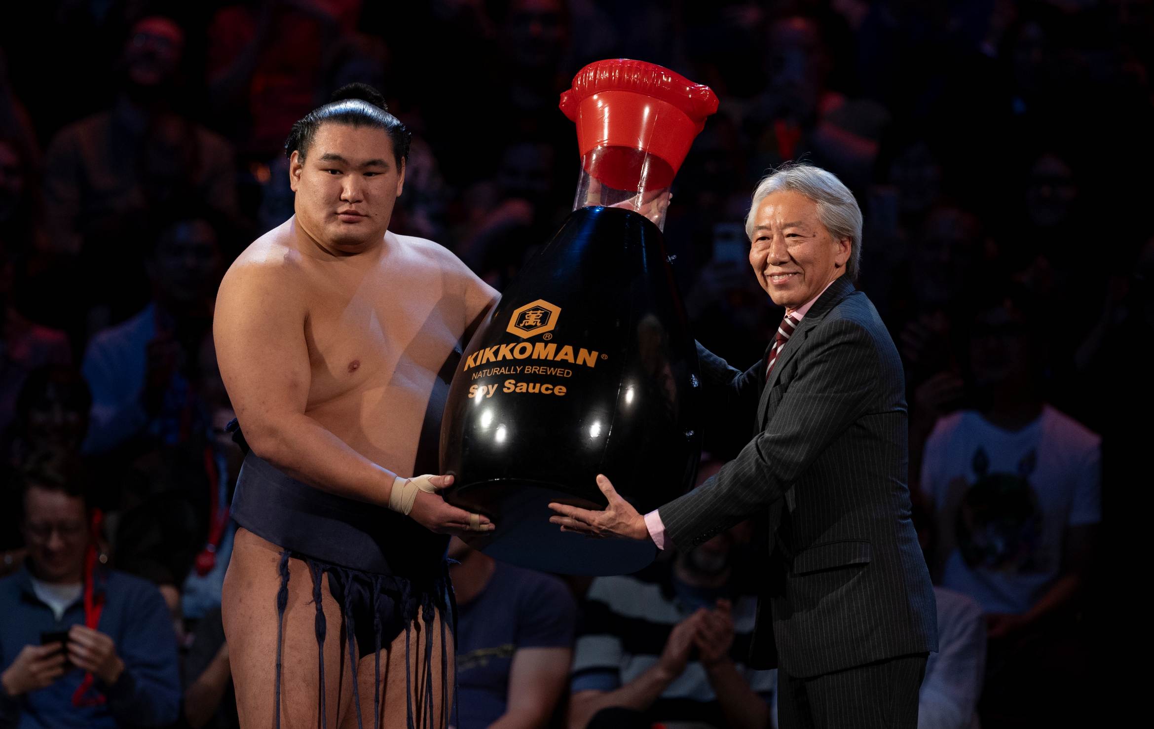 During the event, the Kikkoman brand was showcased in a variety of ways. The Kikkoman logo was displayed throughout the venue, as well as on the official website, in London Underground advertisements, and on prize banners carried around the sumo ring. In addition, Kikkoman products were displayed on tables in the venue’s restaurants and bars.