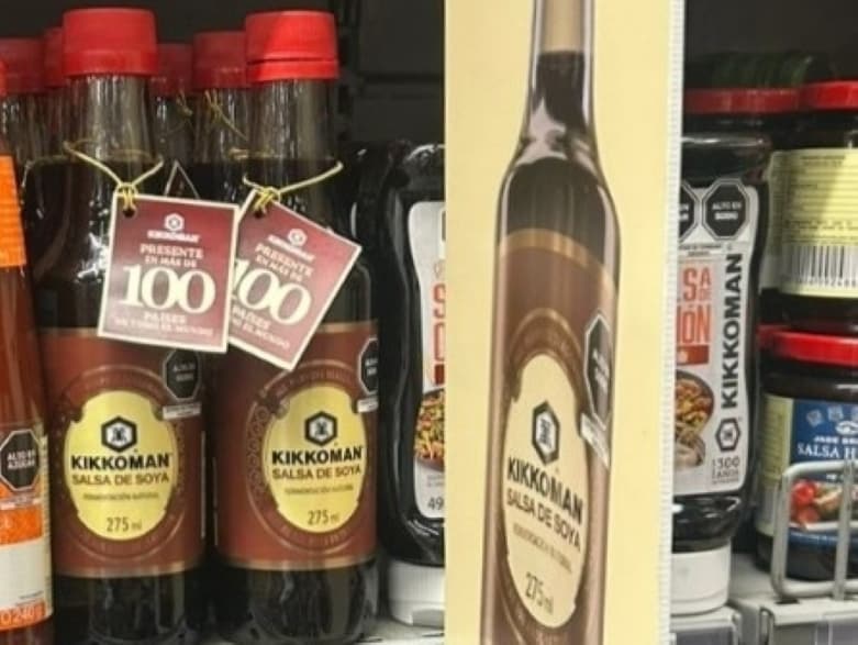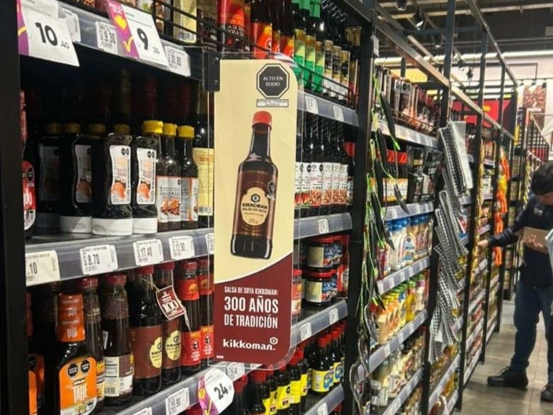 Naturally Brewed Kikkoman Soy Sauce on supermarket shelves in Peru