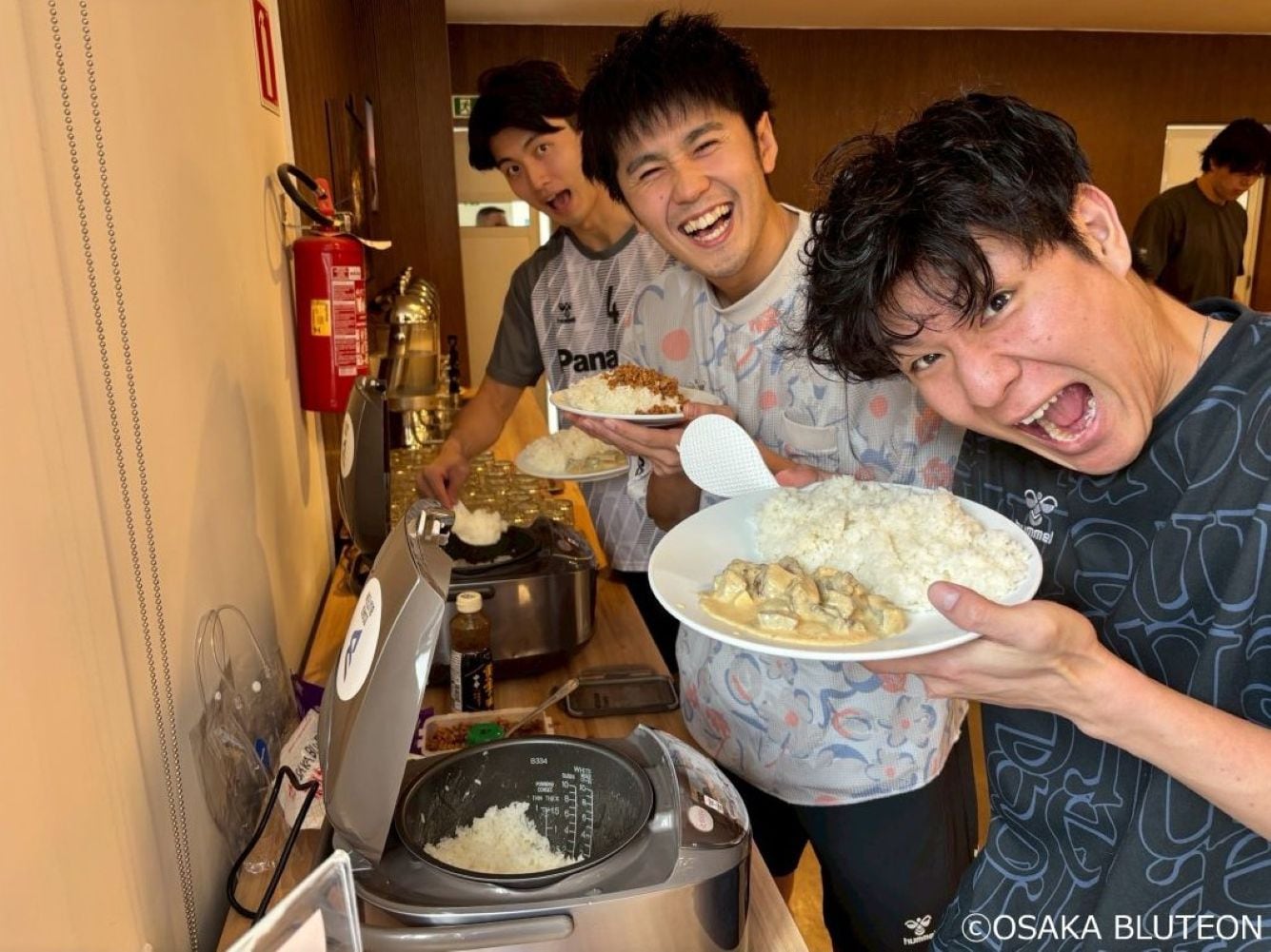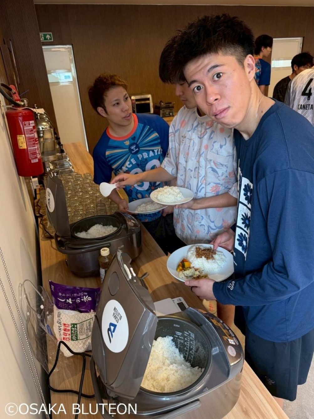 Players joyfully receiving Japanese rice