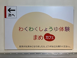 もの知りしょうゆ館内にある「まめカフェ」にてしょうゆソフトクリーム&豆乳しょうゆソフトクリームをお楽しみいただきました。