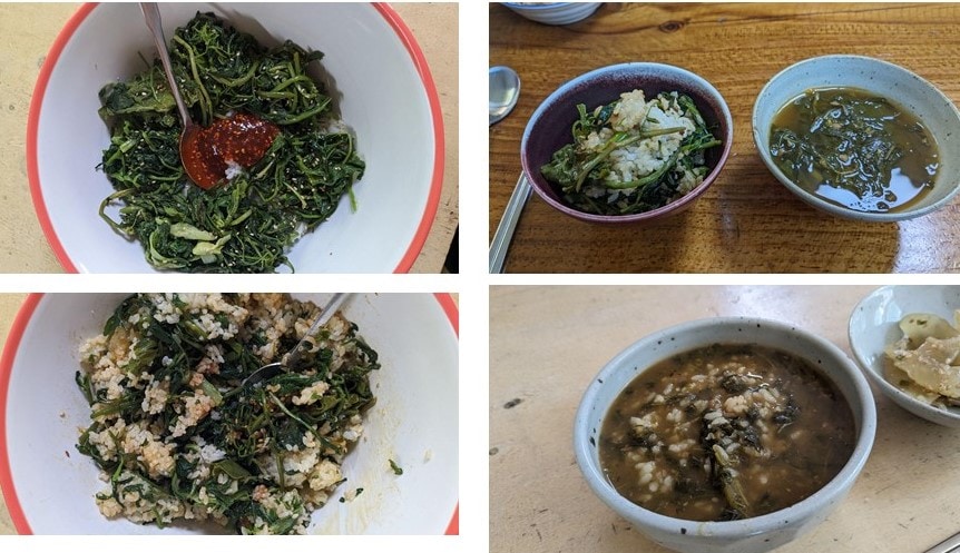 ソウル郊外では、観光牧場を経営している一家にホームステイをしました。奥様は野菜ソムリエの資格を持ち、料理本の著書もある料理上手です。到着した日は、山菜がたくさん入ったナムルに自家製ダレをのせた混ぜご飯とスープを食べました。翌日には前日の残りのスープにご飯をいれ、クッパにしたものが提供されました。前日の残り物を活用した、とても合理的な工夫が見られました。日本でも鍋料理の翌日、余った汁にご飯を入れて食べることがありますが、同じような食べ方を韓国でも体験できてうれしく思いました。
