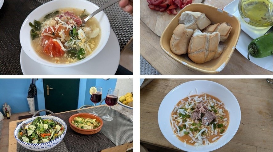 スペインでは、セビリアで一人暮らしをしている女性に料理を習いました。いかにもスペイン人という明るく楽しい方で、おしゃべりをしているとあっという間に時間が過ぎていきます。私が一番印象的だったのは、鶏肉のスープに冷蔵庫にあるさまざまな野菜をいれたスープです。家にあるものをなんでも入れたスープは、世界中にあるのだと感じました。