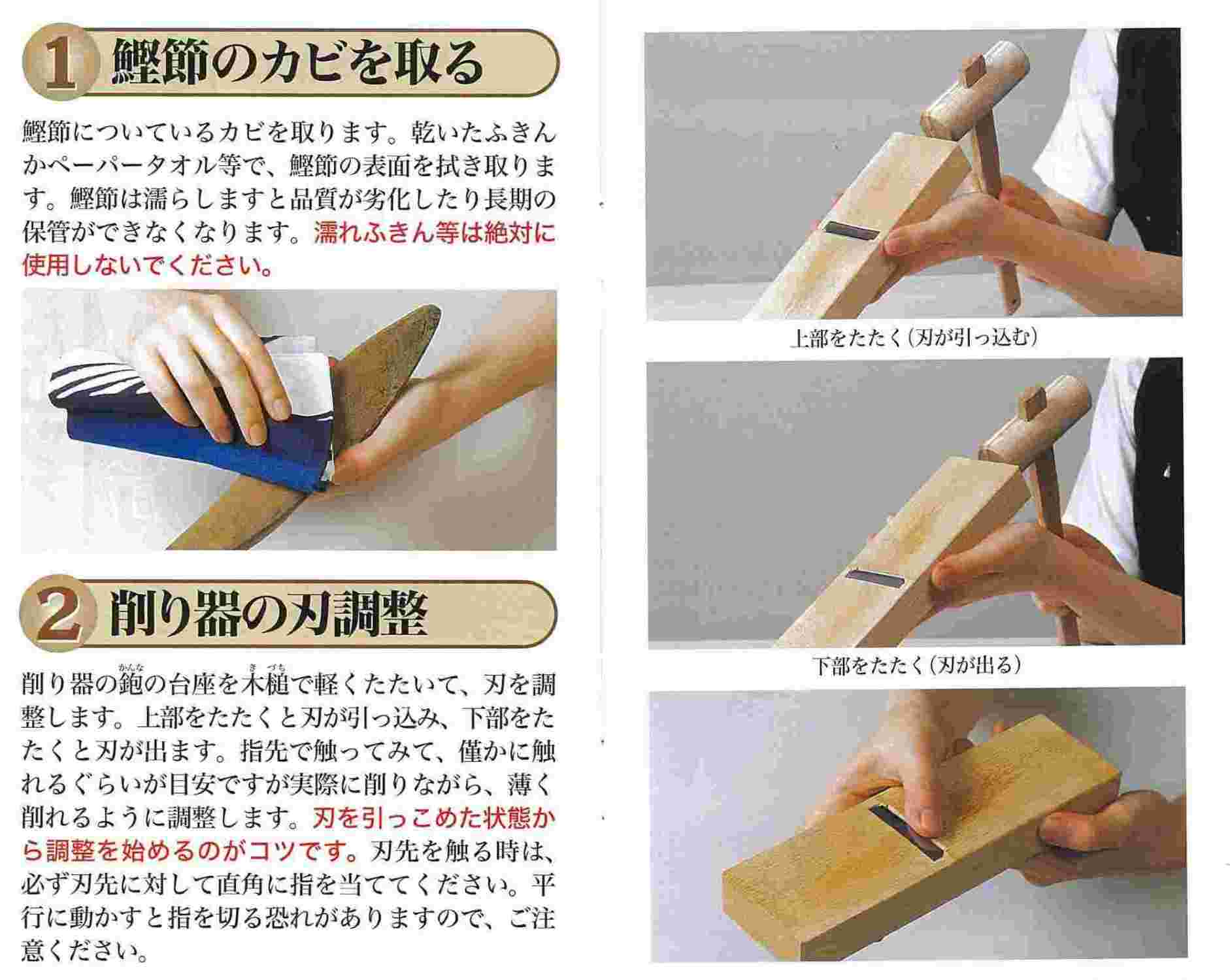 ・古くなったかつお節は、温めると削りやすい。ただし、電子レンジを使用してはいけない。