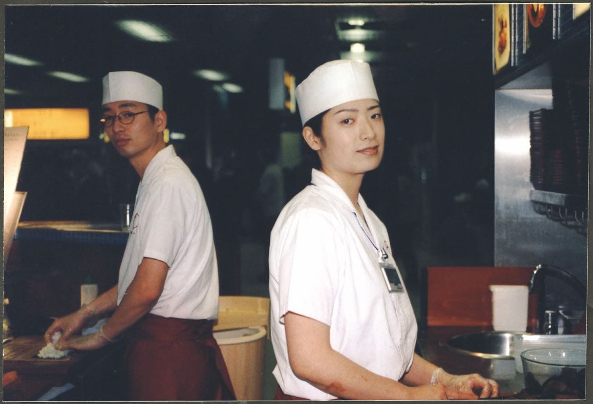「ジャパニーズ・スシ」の看板を掲げた「港」は、村岡初代(はつしろ)・千恵子夫妻が2人だけでキッチンを切り盛りしている。すしカウンターはなく、村岡さんはキッチンの中ですしを握る。千恵子夫人は天ぷらや揚げ出し豆腐などを担当している。夫人が揚げた熱々の海老天2本にアボカドとマヨネーズを加えて裏巻きにしたダイナマイト・ロールが人気だそうだ。