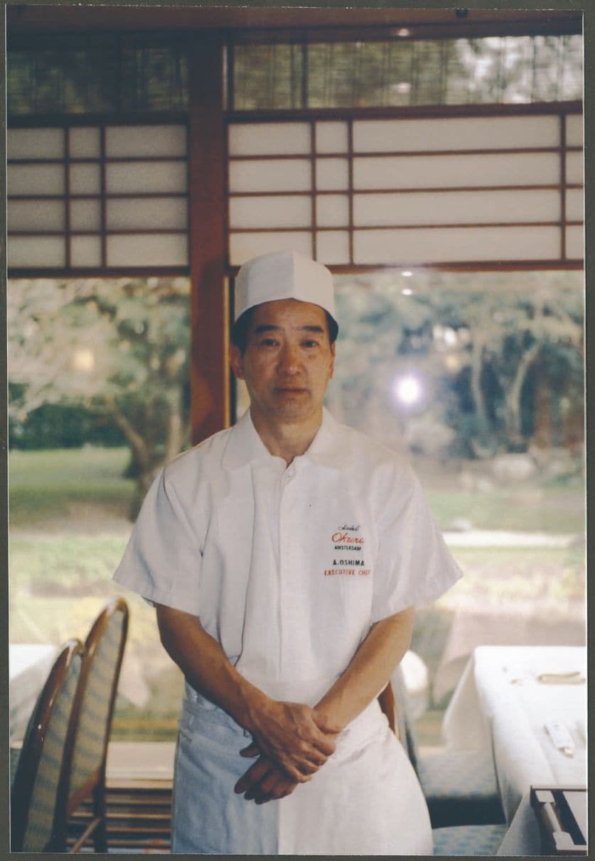 02年、17年ぶりに山里を訪ねてみた。大島さんはもう恐らく交代で、とっくに日本に帰ってしまっているだろうと思った。ところが、何と、前回とほとんど変わらぬ、若々しい姿で現れたので驚いてしまった。「私は海外にしっかりとした日本料理を普及させたいという希望を前々から持っていたんですよ。それでオークラがアムステルダムに進出すると聞いてすぐに志願したのですが、行くからには現地に骨を埋めようと覚悟を決めていました。