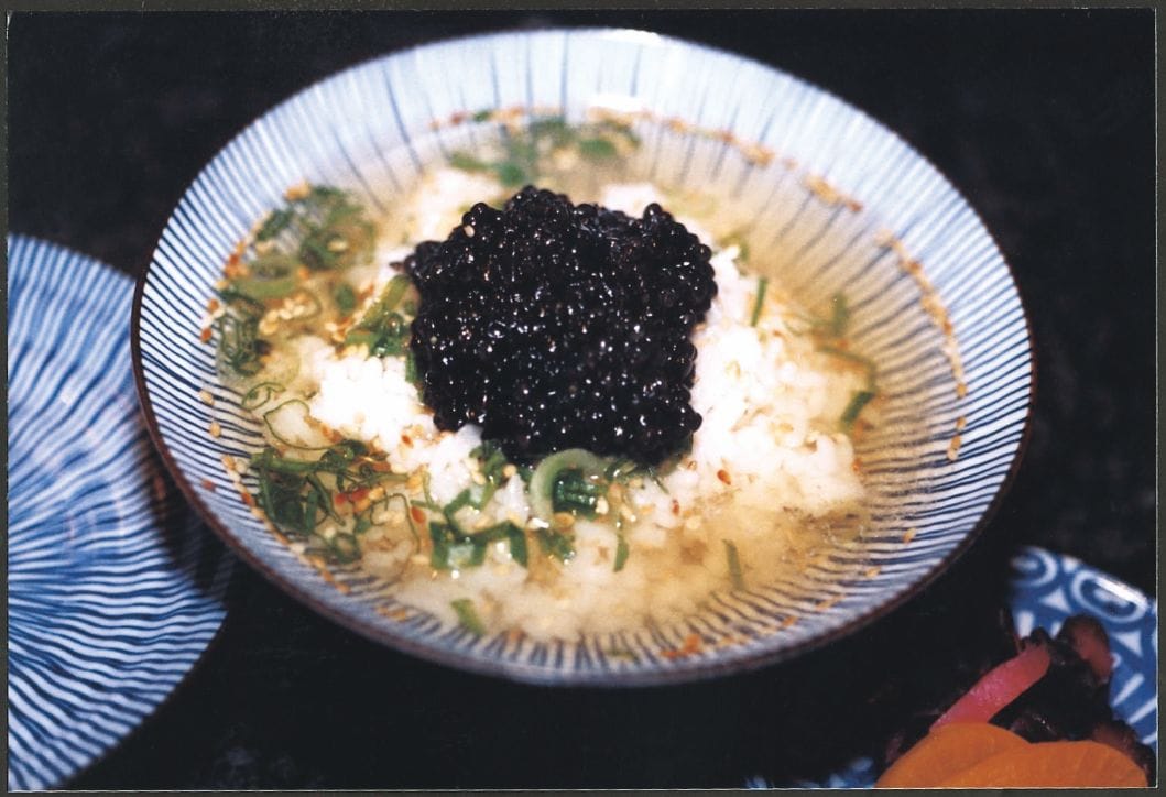 キャビアのすしもあった。キャビアはペルシァ湾の向こう側のイランが本場なので、他よりは安く手に入るようだ。古川さん特製の「キャビア茶漬け」を御馳走になった。白いご飯の上にキャビアが山盛りにのっている。その量がハンパではないから、茶漬け1杯が92米ドルもする。キャビアを十分に堪能したが、後にも先にもこんなに高い茶漬けは食べたことがない。