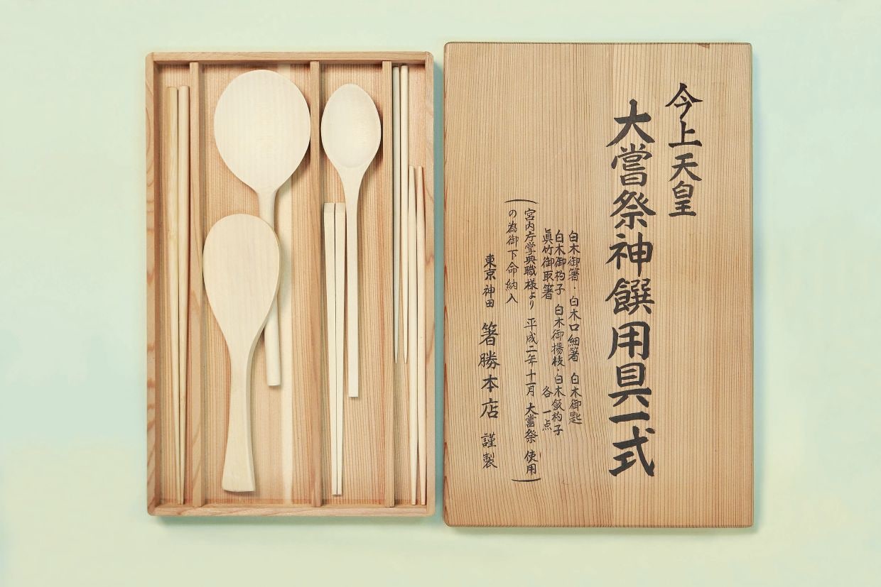 中太両細の両口箸は、平成2年11月に行われた大嘗祭で使われた神饌用具の中にも見受けられる。