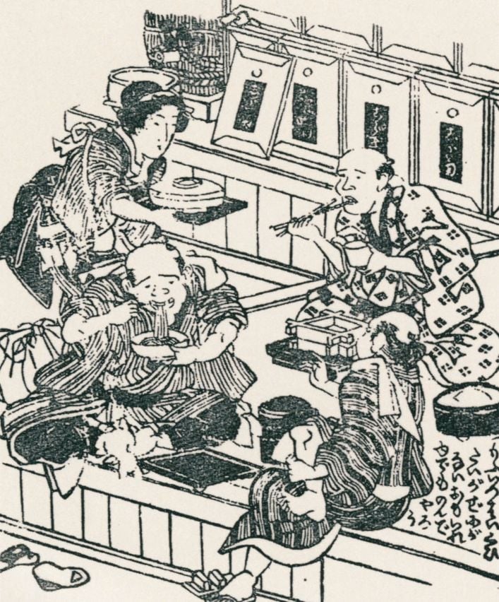 江戸時代になると、江戸に集った単身者のための外食産業が発達した。寺社の門前や名所、祭り・縁日、盛り場など、人が集るところに屋台や店が出て天ぷら、蕎麦、寿司、鰻の蒲焼などを売った。また、江戸市中には居酒屋や一膳飯屋が並び、庶民の胃袋を満たした。一方、庶民には縁遠い高級料理店も軒を並べ、会席料理を売り物にした。前の時代から受け継がれた本膳料理や懐石料理も、確実に根を下ろし、今日の日本料理の礎を築いた。