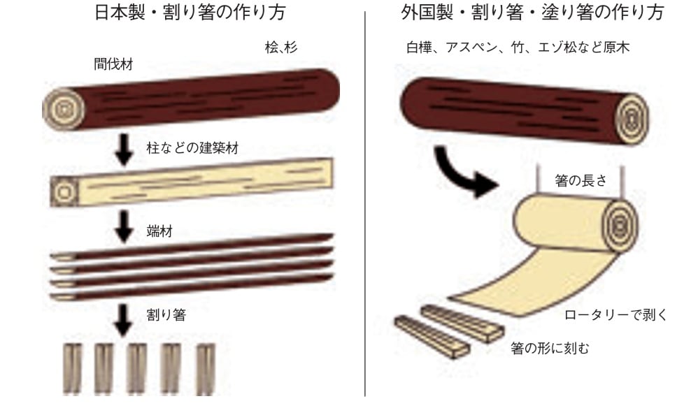 日本は国土の約7割が森林である。この環境が日本の箸文化を、竹や象牙から箸を作った中国、金属製の箸を作った韓国と違う方向へと導いた一因でもあるだろう。とくに、近世における割り箸の登場は画期的だったといえる。