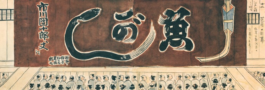 これは文化7年(1810)、新春の中村座顔見世興行につめかけた魚河岸連中の総見(そうけん)の様子を賞嘆する大田蜀山人(しょくさんじん)の一文です。蜀山人は、号を南畝(なんぽ)といい、寛延2年(1749)生まれ、70俵5人扶持(ぶち)という軽輩の御徒衆(おかちしゅう)ながら、戯作者、狂歌師として江戸の市井風俗を映しました。かれは魚河岸の旦那衆が団十郎を大いに贔屓するのを、さすが江戸ッ子だ、と褒め讃えているわけです。ここで魚河岸の団十郎びいきというのは、とりもなおさず市川家の代表演目「助六(すけろく)」に対する後援を意味します。