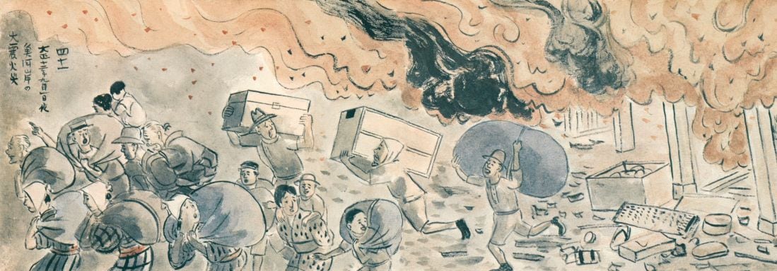 こうして幕府は瓦解(がかい)。文明開化の世を迎え徳川の後ろ盾を失くしてしまった魚河岸の運命はどのようなものであったでしょうか。水産業には産業資本が入り込み、江戸以来の産地支配力を失った魚河岸には、集荷と販売に血道をあげるよりほかありませんでした。狭い市場内での過当競争に明け暮れ、東京市の人口急増による需要増によって命脈を保つものの、近代日本に取り残された魚河岸は、前時代的伏魔殿(ふくまでん)として孤立します。新東京の真ん中に生臭い市場は迷惑だとばかり、何度も移転命令が下ります。そして大正12年(1923)、関東地方を襲ったマグニチュード7.9の関東大震災の襲来。市内各所で上がった火の手は魚河岸にも迫ってまいりました。必死の防火に努めるも、どうにもなりません。船を持っている者は日本橋川を東京湾へと逃れようとしますが、火は川面をなめるように渡ってくると、人びとを容赦なく焼きつくしました。大自然の猛威になすすべもないまま、江戸以来300年の歴史ある魚河岸は灰燼(かいじん)に帰してしまったのです。