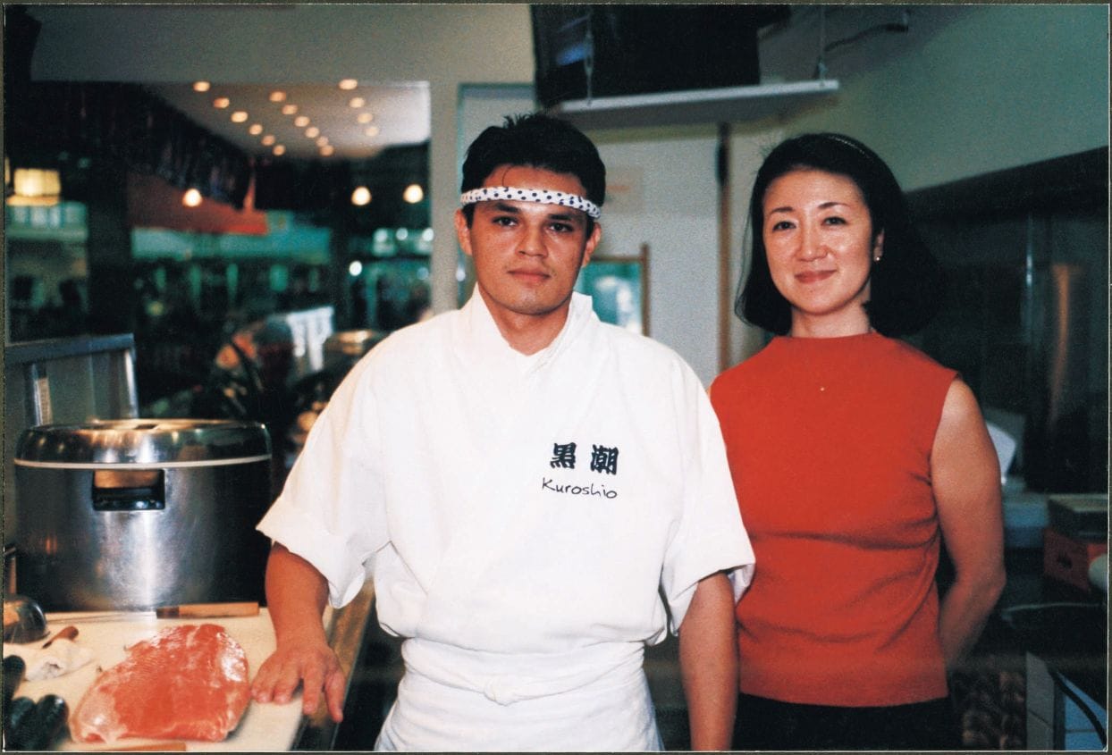 ブラジルのすしブームは80年代後半から始まった。アメリカのヘルシーブームがブラジルに伝わり、とりわけ「すしは健康食」という概念がブラジル人の間に浸透した。ブラジルの長距離バスの発着所「ティエテ」の隣に「ショッピングD」という大きなショッピングセンターがある。この2階のフードコートにある「黒潮」という日本レストランを訪ねた。あのパラグァイの「ニュートーキョー(No.12後半に記載)」の滝本厳さんから「娘がサンパウロで日本レストランをやっているから、サンパウロに戻ったら是非寄ってみてくれ」と言われていたのだ。フラム移住地で生まれた娘の真実さんは、サンパウロでコンピューター技師をやっていた坂本憲司さんに嫁いでいた。だが結婚してしばらくして、憲司さんは会社を辞めることにした。コンピューターの味気ない仕事にいや気がさしたとのことだ。それで同じような悩みを抱えていた技師仲間と相談し合い、共同で当時流行しつつあったすし屋をやることにした。ただし他の人と同じことをやっても面白くないので、それまで誰もやったことのないショッピングセンターの中に出店することになった。1994年のことだ。するとこの店が大当りで大繁盛したが、やがて憲司さんはこの店を抜け、独立して一人で別な場所で店を開けることになった。「黒潮」である。この時、前の店の開店当初からすしを握っていたブラジル人のマニエル君を連れてきた。このマニエル君は腕がよかったこともあって、「黒潮」も大いに賑わった。ショッピッグセンターは年中無休なので大変だ。憲司さん一人ではとても無理なので、真実さんも交代で店に出るようになった。真実さんは初めはすし屋に反対していた。パラグァイでお父さんが苦労しているのを目のあたりにしていたからである。だが店が繁盛しているので今は楽しそうに働いている。