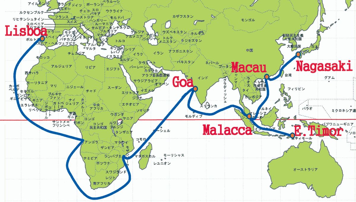 リスボン(ポルトガル)-ゴア(インド)-マラッカ(マレーシア)-マカオ(中国)-長崎(日本)