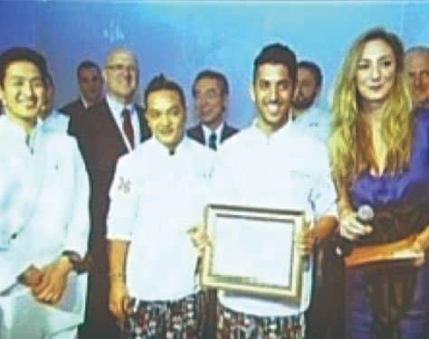 本当に色々な国の方々が参加しています。アジアの方もいますし、現地の方もいますし、ヨーロッパから来ている方もいるという感じで、二人一組で参加しています。このSushi Masterで優勝するということは大変名誉なことだそうです。これが優勝者の作品です。このようにお刺身が奥の方にあって、手前に握り寿司、そしてその前に巻物があります。私がこの作品を選んだ基準は握り寿司の一個一個の大きさが同じで、衛生的というところです。つくっている様子も審査の基準になっていて、つくっている様子、盛り付け、そして味という三つで見るのです。今映っている彼が、優勝した若干26歳のイスラエル人のメイダン君です。彼にどのように寿司を勉強したのか聞いてみました。すると日本料理屋にはどこにも修業に行っていないのです。どうしたかというと、全部インターネット。動画サイトで寿司の握り方を見ながら、見よう見まねで勉強したそうです。