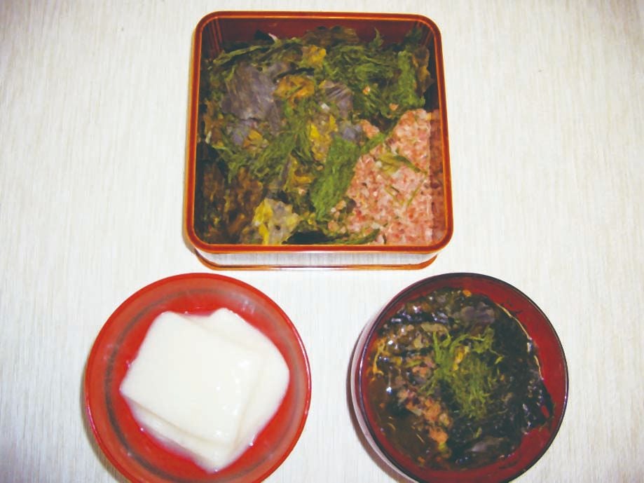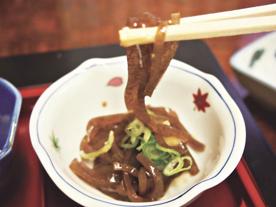 佐渡の「いごねり」は、海藻のエゴノリを煮溶かして冷やし固めたものに醤油をかけていただく郷土料理で、えごねりとも呼ばれる。旅館の朝食に毎日登場する佐渡の定番料理である。
