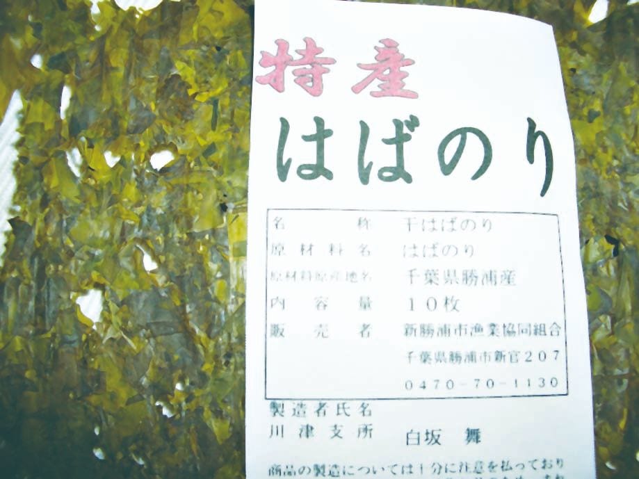 「はば」とは、褐藻類の一種(はばのり)で、アオサと混同されることがある。潮の香りが強く、採集は冬(12月頃)から春にかけて、特に寒い時期のものが柔らかい。『毛吹草』(1645年)に、はばは安房の名産と記されている。現在、伊豆でも採れるが、今では貴重品で1枚(18㎝×30cm)で1000円ほどする高価なものである。