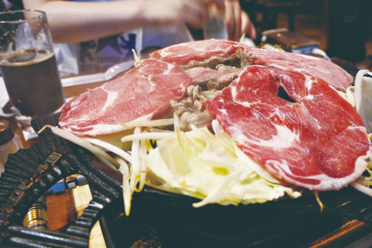 「ジンギスカン」とは、羊の肉を中央部が凸型になっている専用の鍋に、肉と野菜をおき、肉汁を用いて野菜を加熱しながら食べる。醤油ベースの調味液漬け込み肉の「味付け肉」、冷蔵肉の「生肉」、冷凍肉の「ロール肉」がある。味を付けない肉を「つけだれ」で食べる方法もある。羊肉の臭みを抑えるため、明治・大正時代は、牛鍋等と同様に味噌を使っていたが、昭和時代に改良が進み、現在、たれは醤油ベースが主流である。たれには、醤油、味噌、砂糖、リンゴ果汁、ショウガ、ニンニク、ゴマ油等が配合される。市販されるジンギスカンのつけだれもあるが、家庭よりも店に行って食べるもしくは、野外で食べることが多いようだ。