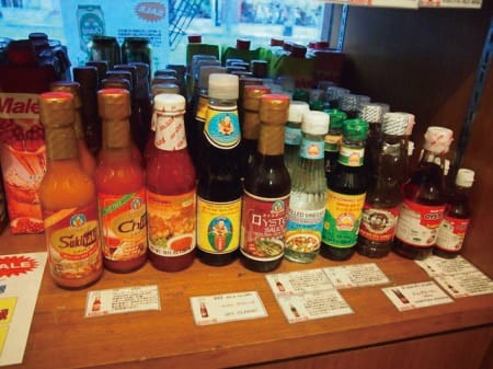 学生時代、ゲウチャイに行って初めて食べたトムヤムクンの甘くて酸っぱくて辛い味には衝撃を受けた。タイはしょうゆではなく魚醤を使うのだと習い、信じてきた。タイ料理の多くはナンプラーで塩味をつけることに間違いはない。しかし、タイにもソイソースがあり、日常的に家庭でも使われ、中国系の料理では欠かせない調味料であることを本誌No.25で報告した。日本の料理が寿司や蕎麦や牛丼だけでないのと同様に、タイ料理もトムヤムクンとグリーンカレーとパッタイ(米粉麺炒め)だけではない。もっと多様な料理があり、調味料の使い方がある。日本に住むタイ人達はどこで、どんな風にその舌を満足させているのであろうか。
