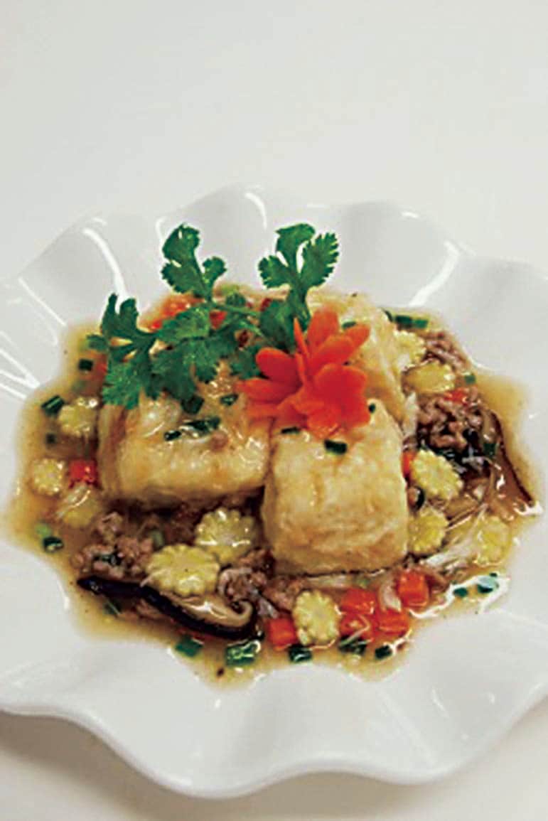 山口氏は、上海の南に位置する杭州の料理が得意で、名物料理として知られる東坡肉(トンポーロ―)には老抽(中国たまりしょうゆ)がなくては作れないという。その特徴は、独特の赤味がかった照りのある色合いにある。その深い色を見て、中国人は「おいしそう」と思うのだそうだ。絶品の東坡肉は、濃厚な色から覚悟したほどしょっぱくはない。この深く濃く明るい色を出しながら味のバランスをとるには、たまり系のソイソースでなければならないというのがわかる。使っている老抽は中国の大手ブランドのものであった。ただ、同社の老抽は後味に苦味が残るらしく、炒め物等にはシンガポールで製造された老抽と生抽を併用していた。シンガポール産の中国スタイルのソイソースを日本人シェフが日本の本格中国料理店で使う。中国本土であればいろいろな老抽が選べるところ、輸入品が限られる日本にあっては、国を越えて好みのソイソースを探す工夫がなされていた。