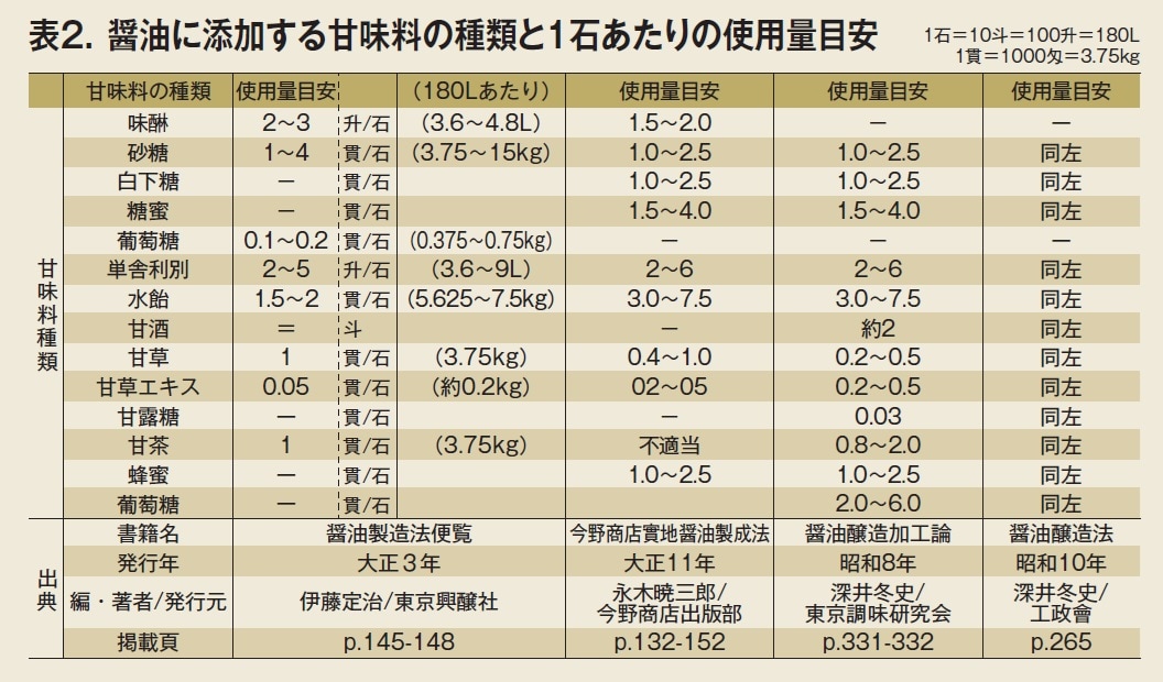 「九州と北陸のしょうゆは甘い」「海沿いのしょうゆは甘い」とよくいわれるが、どうしてだろうか。大正期から昭和にかけてのしょうゆ醸造技術書には甘味料の割合に関する記述がみられ、この頃、甘味づけをして塩角をとった口当たりのよいしょうゆが各地で造られていたことが考えられる。また戦後、富山の港町から移出されたしょうゆは特に甘さが強調された甘口タイプで、「北陸のしょうゆは甘い」といわれるきっかけになったことが考えられる。時代ごとに、北陸のしょうゆが果たした役割とその歴史をたどってみる。