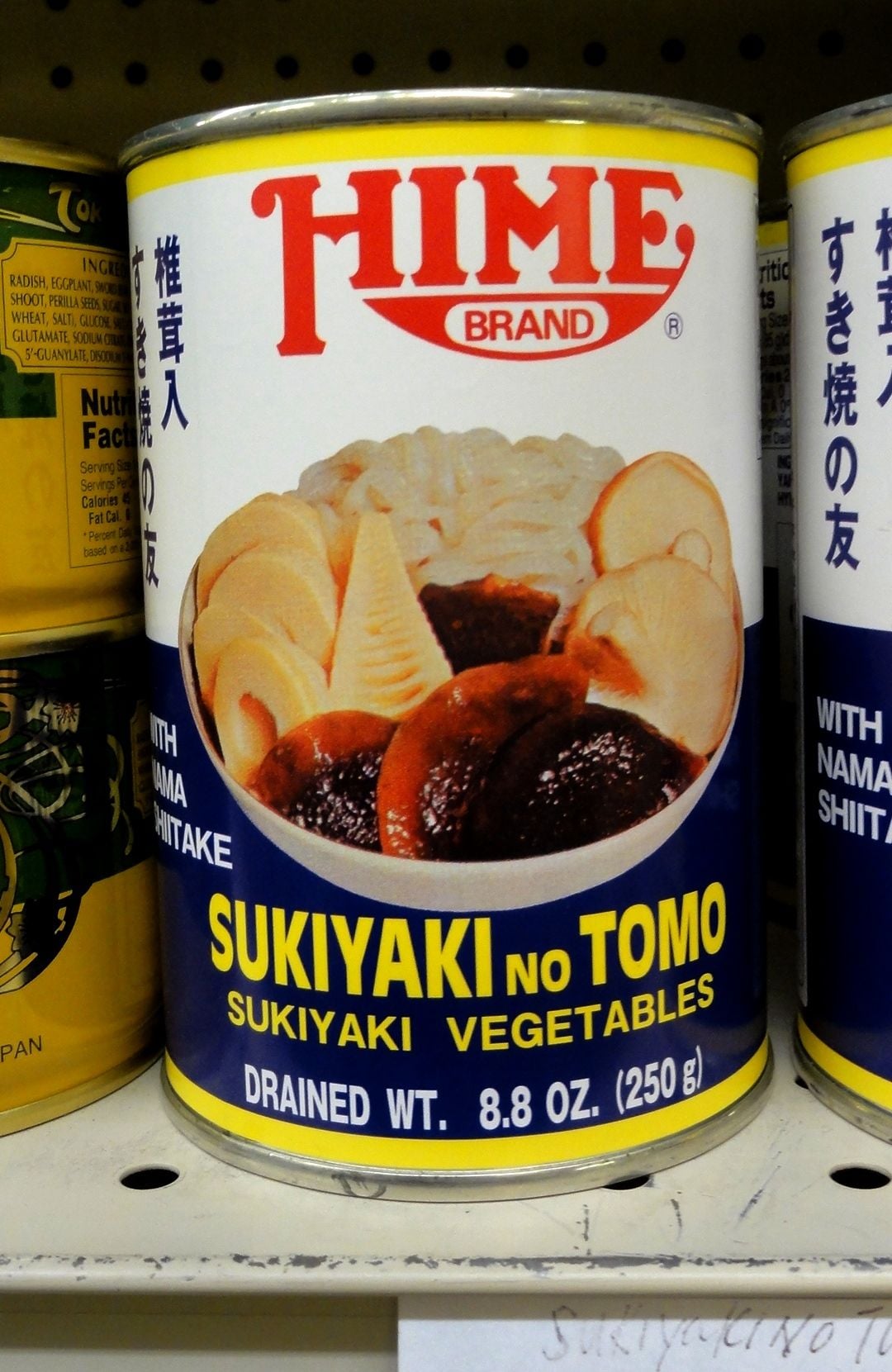 ここでもう一点注意をひくことがある。缶詰入りしらたきが使われていることだ。1969年というこの時期には、しらたきはまだ缶詰による輸入品であったということを示している。また、この伝統は現在まで続いており、日系スーパーマーケットでは「すき焼の友」(Sukiyaki no Tomo)というスキヤキに使う具材が缶詰で売られている。