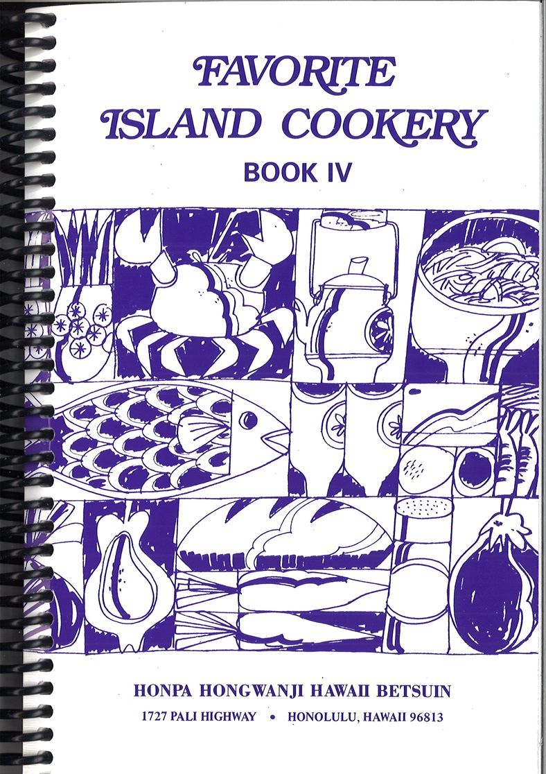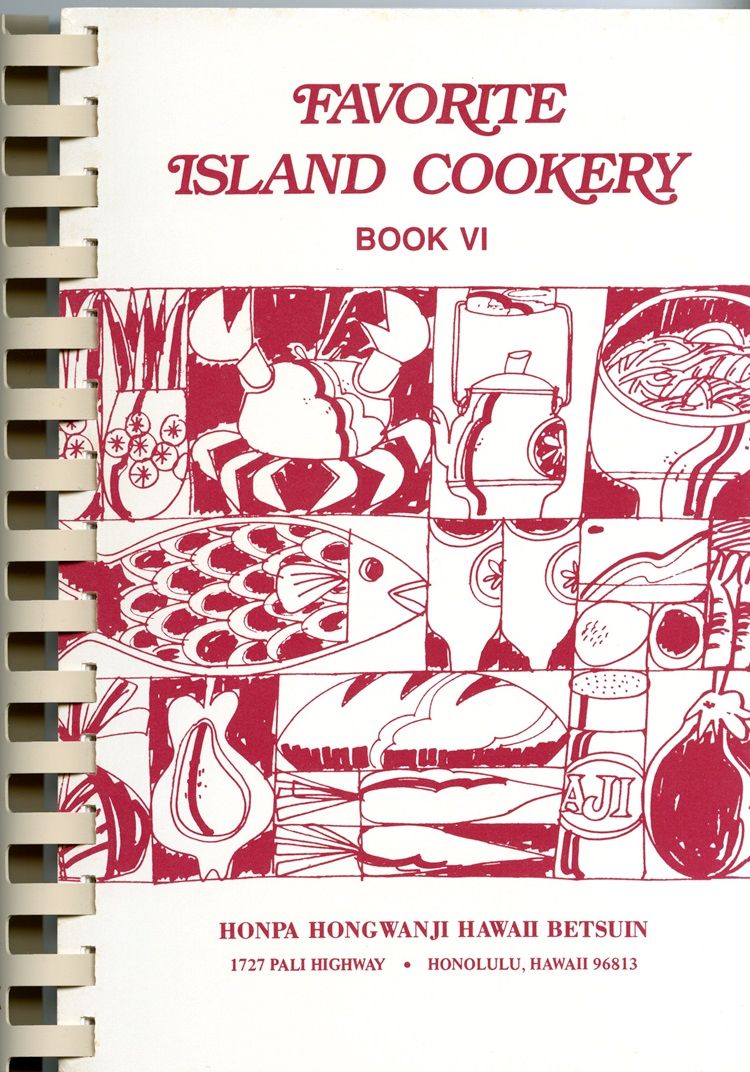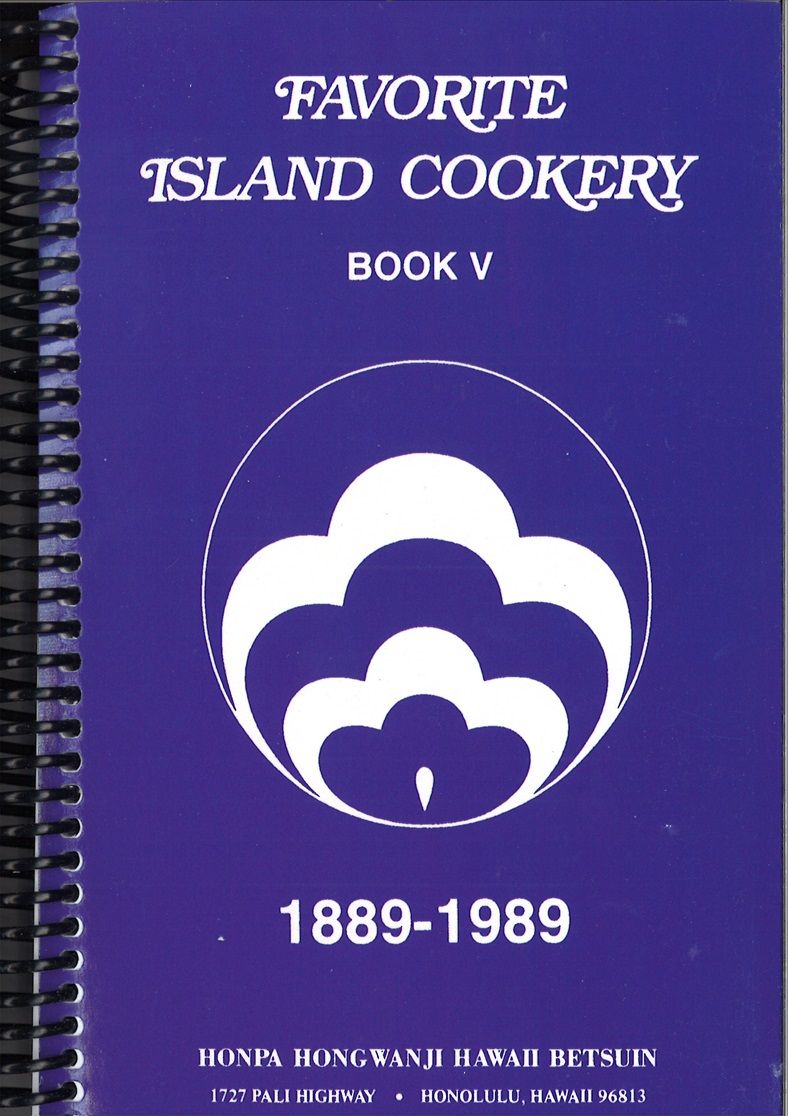 本書Favorite Island Cookeryの日本語訳は、『お気に入りハワイ料理法』だろうか。Islandは島だが、ハワイのことを指していると考えられる。このレシピ集全6巻は、ホノルルにある本派本願寺ハワイ別院で発行されたもので、このうち3巻は記念事業の一環として作成されている。第1巻は同別院85周年記念、第4巻は官約移民※100周年記念、第5巻は同別院100周年記念と銘打たれている。