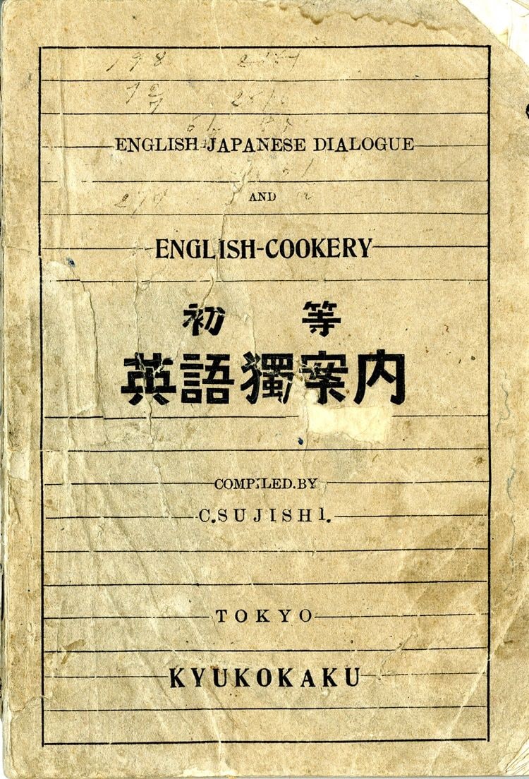 本書は書生としてアメリカに渡った単身移民が、帰国直後に書いた海外渡航者向けの自習用英語教材で、1901年に発行されている。著者の筋師千代市(すじしちよいち)は1876年に和歌山県太地村(当時)で生まれ、16才の時に米国カリフォルニア州に渡航し、現地で9年間を過ごした。『英語独(ひとり)案内 附西洋料理法』(English Japanese Dialogue and English Cookery)とタイトルにあるように、内容的には単なる英会話書ではなく実用案内書である。緒言に「予は米国に滞在せしこと九ヶ年間の長きに至れり其間家内的労働に或は農業に月日を消費しぬ然れども渡米最初英語の不通なるを以て日々の困難一方ならず苦心のあまり両眼より流涙せしことさへある」と述べ、英語を学ぶことの重要性を指摘し、「日用西洋料理法も便宜のために記しぬ」としている。この「日用西洋料理法」には「マイニチノコックノシカタ」とフリガナが振ってあり、料理法の個所は全201頁のうち68頁、つまり全体の三分の一を占めている。意図的かどうかは分からないが、大正5年版の英語タイトル後半部分English Cookeryは、そこだけ文字サイズが大きくしてあり強調されている。これはその当時、住み込みの家事仕事をしながら学校に通っていた書生と呼ばれた単身移民の生活実態を反映しているのだろう。つまり、西洋料理を作れる能力が不可欠だったということである。そのため本書ではアメリカの典型的な家庭料理を中心に130を超える料理方法を紹介している。その当時の日米間の食生活の違いを考えると、カルチャーショックをはじめ、習得には相当な困難が伴ったはずで、著者の並々ならぬ意気込みが感じられる。