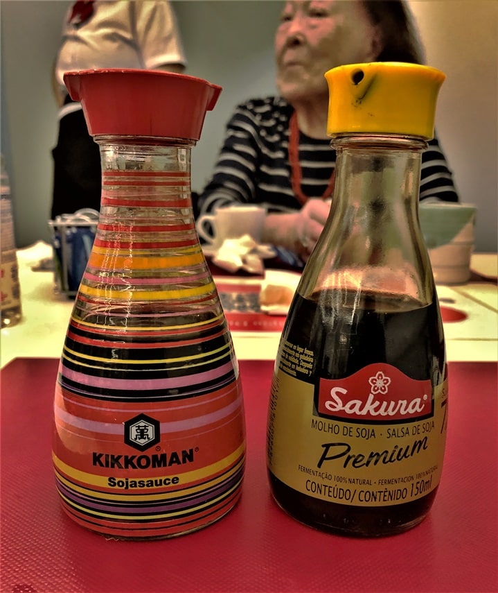 ブラジル料理と言えばシュラスコ(ブラジル風バーベキュー)のイメージが強い。ところが日本食ブームの影響で、シュラスコレストランの数よりも日本食レストランの方が多くなったと言われている。2022年の推定では、ブラジル全土で1300店舗にのぼる日本食レストランが存在する*1。さらに、そのシュラスコレストランでさえも、品揃えとして寿司や刺身を提供するのが当たり前になってきている。そして、その場に間違いなく置かれているのがshoyu(醤油)である。かつてはmolho de soja つまり大豆ソースと呼ばれていたが、現在ではshoyuで通用する。しかし、レストランをよく観察すると、テーブルには異なる2種類の醤油が置かれていたり、コーナーごとに違う醤油が配置されている場合がある。なぜ2種類なのか、あるいはコーナーによって種類が違うのか。そこに実は日本人移民との深い関係が潜んでいる。