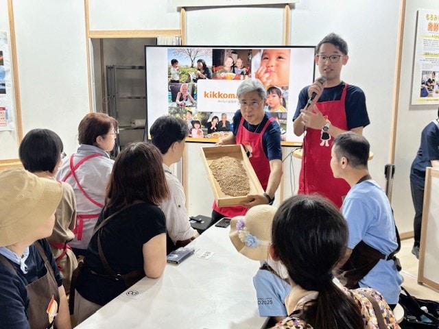 2025年、キッコーマンは「おいしさでつながる世界」をテーマに、海外と関西のトップシェフを招いた官民連携のイベントを開催し、食のサステナビリティも追及した新しいおいしさを発信しました。また、「発酵県ちば」をテーマにした千葉県ブースの出展に協力し、しょうゆづくり体験などで発酵の魅力を紹介しました。