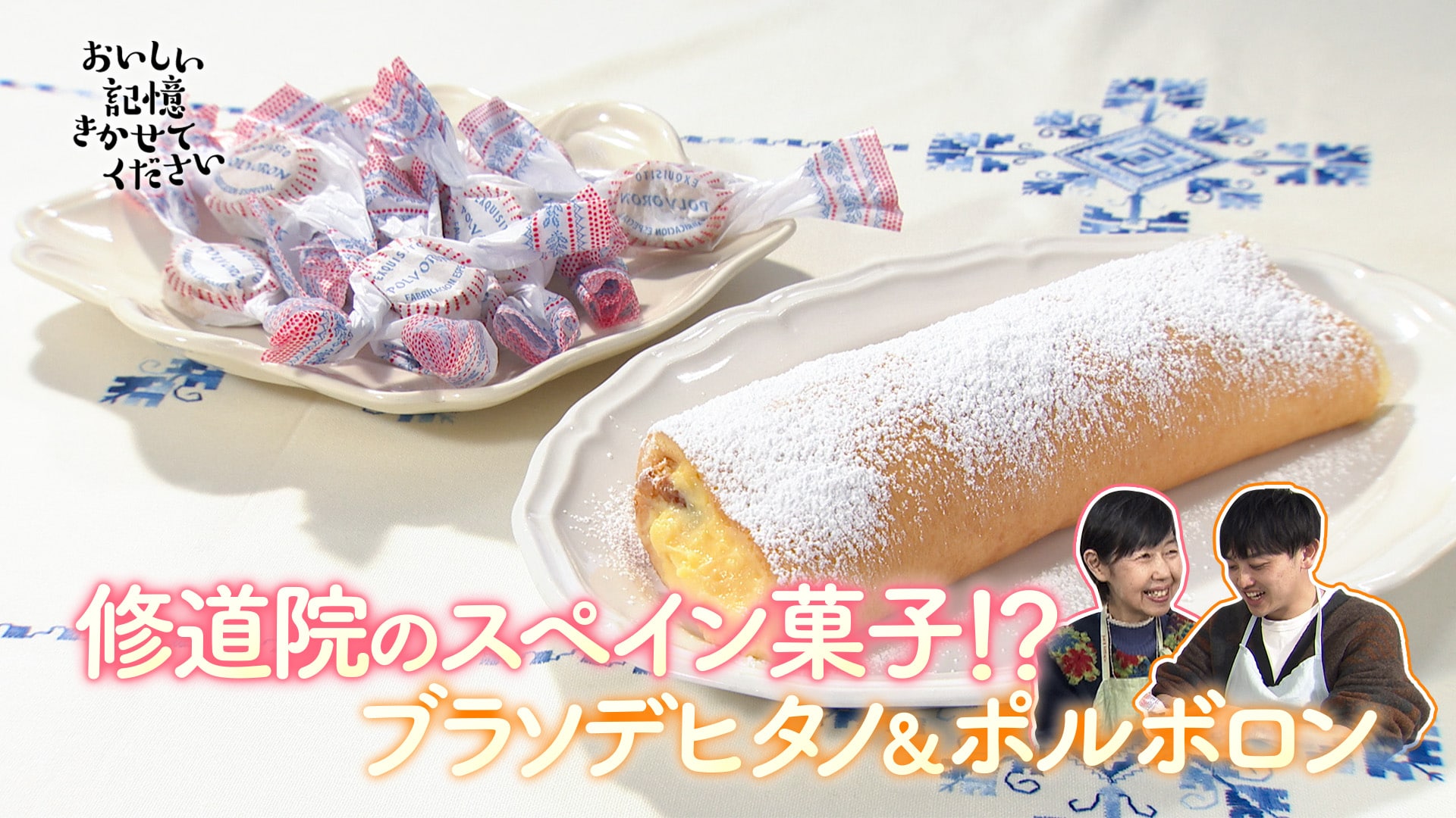 幼い頃に伯母と食べた「ブラソデヒタノ」と「ポルボロン」。調査員の青空さんが思わず「成分?」と聞き返した「おいしい記憶」は、スペインから伝わった郷土菓子。今ではつくり手がいなくなり、幻の味に。スペインに縁のありそうなお店に聞き込み調査し、お菓子の再現に挑戦します。スペインの魅力とカスタードクリームたっぷりの絶品スイーツ、ぜひご堪能ください♪