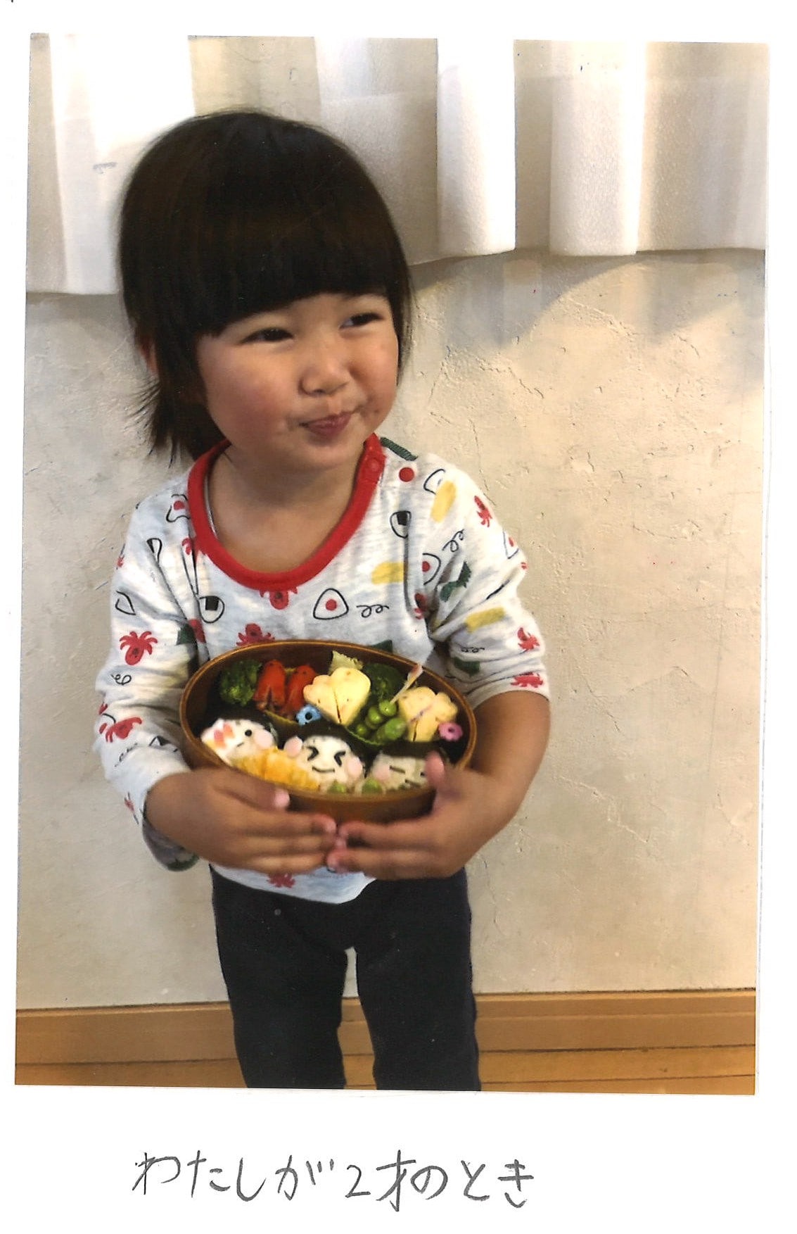 わたしには、年のはなれたお姉ちゃんがいます。お姉ちゃんは、やさしくてとても料理が上手です。当時、高校生だったお姉ちゃんはわたしが二才の時に、わたしのためにおべん当を作ってくれました。すごくうれしかったことを今でもおぼえています。