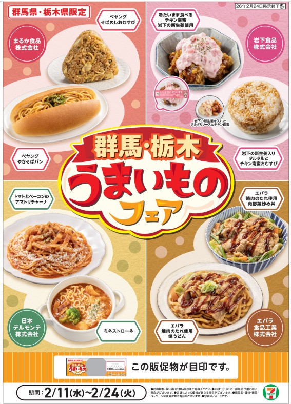 地域限定企画「群馬・栃木うまいものフェア」を群馬県および栃木県内のセブン‐イレブン各店舗にて2月11日(水)より開催!